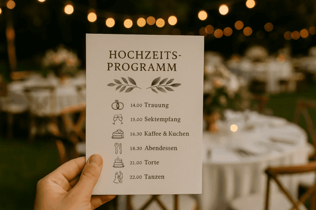 Entdecken Sie originelle Hochzeitsprogramm Ideen für unvergessliche Momente. Von Zeremonien bis Feier - Inspiration für jeden Geschmack.